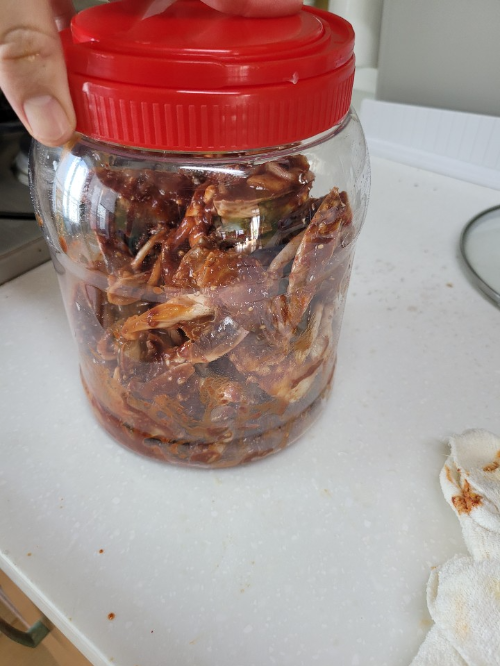 ● 양념게장은 통에 담아서 냉장보관 하시면 됩니다. 집에 김치 냉장고가 있다면 김치냉장고에 넣어주시고요. 김치 냉장고가 없다면, 일반 냉장고에 넣어주시면 됩니다.