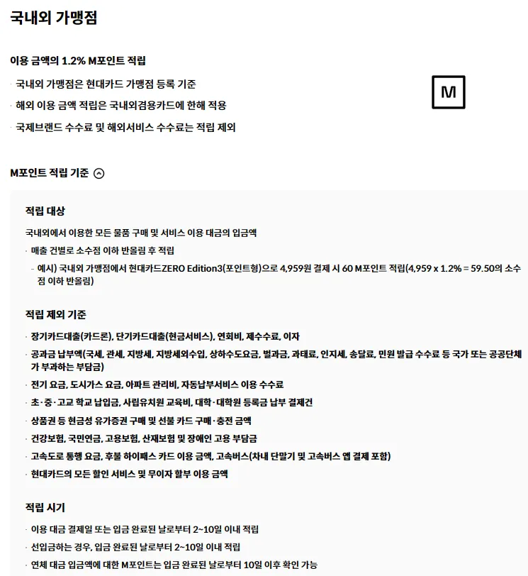 4. 현대카드 M포인트 사용처