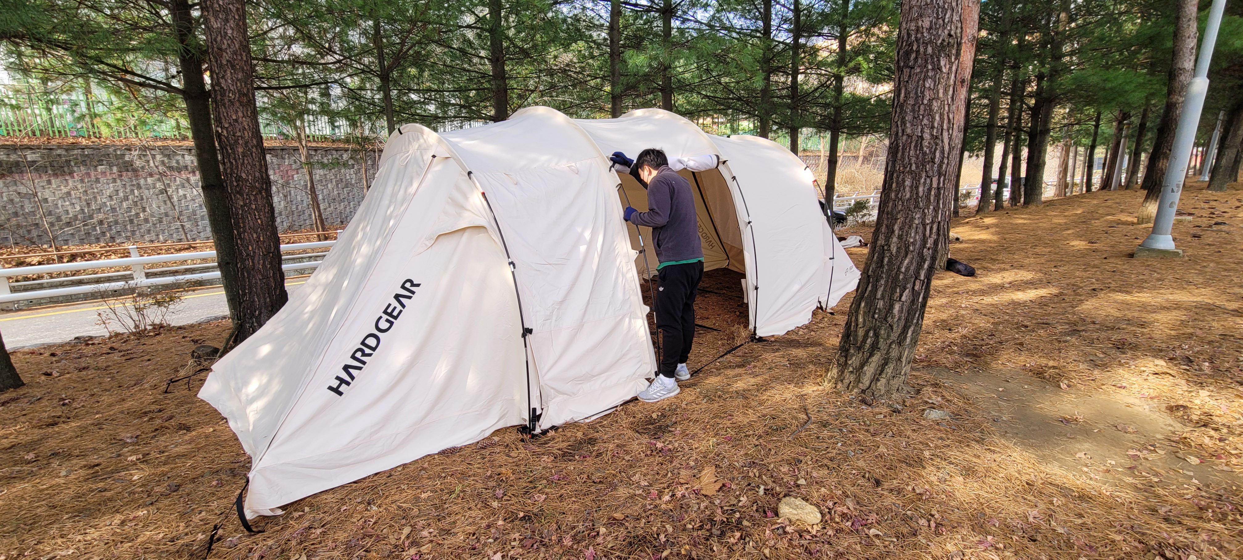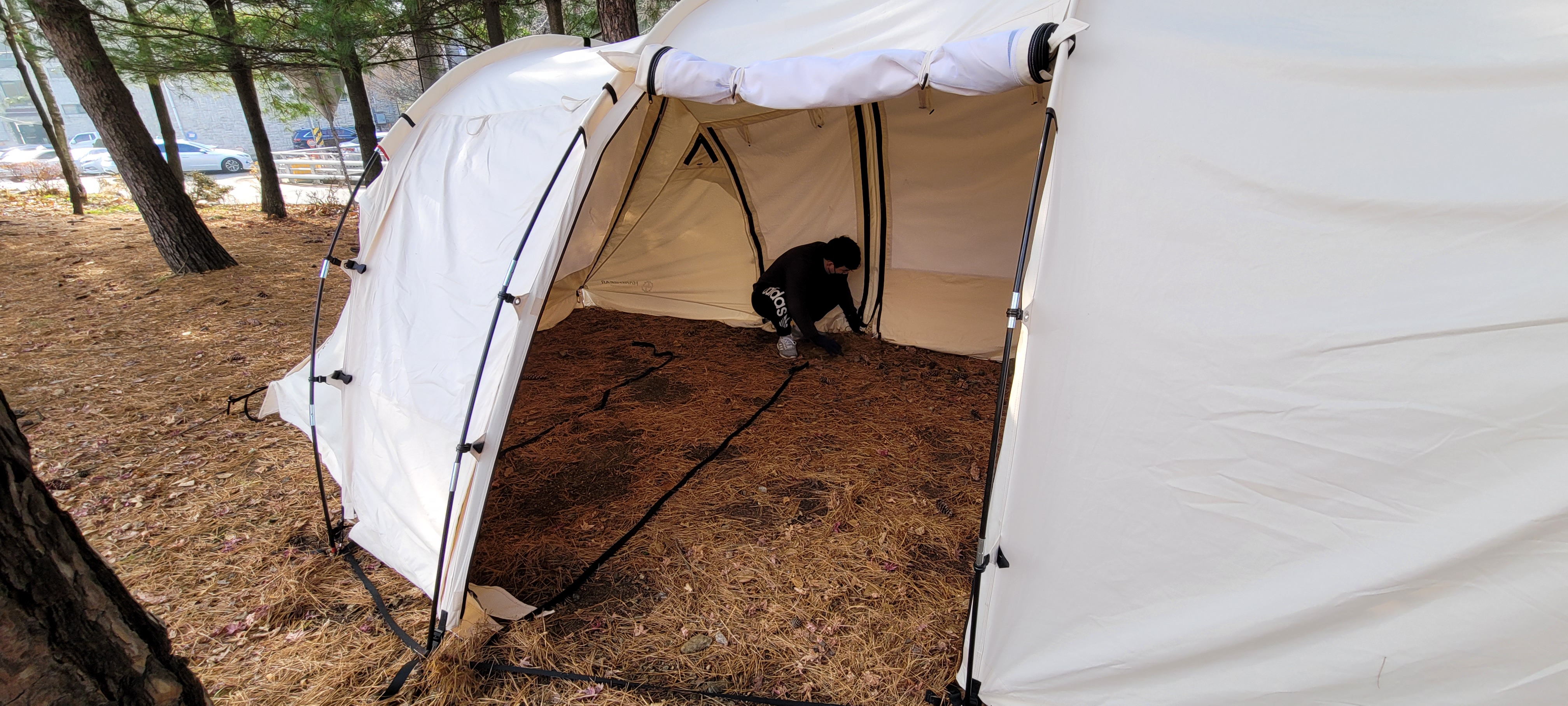 (폴대를 텐트에 연결할 때 진짜 힘들어요ㅜ)