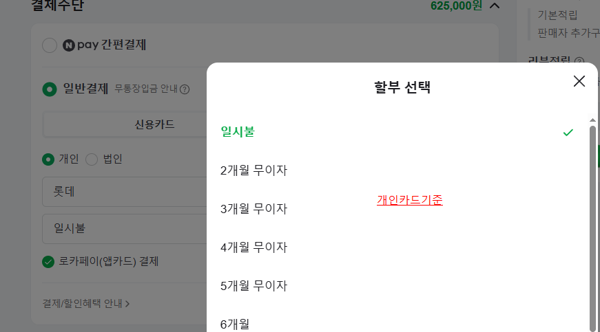 - 공지된 무이자 개월 범위 안에서 선택했다