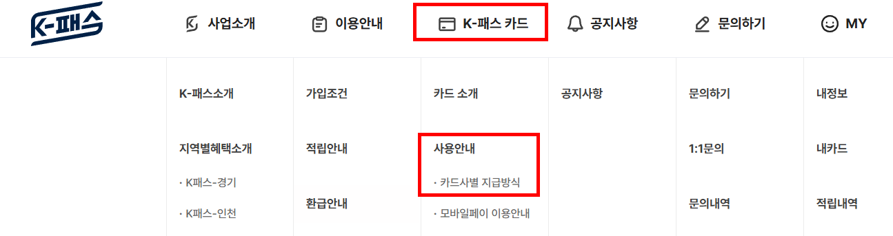 - K-패스 홈페이지 접속 후 K-패스카드 > 카드소개로 경로 들어가시면 확인 가능