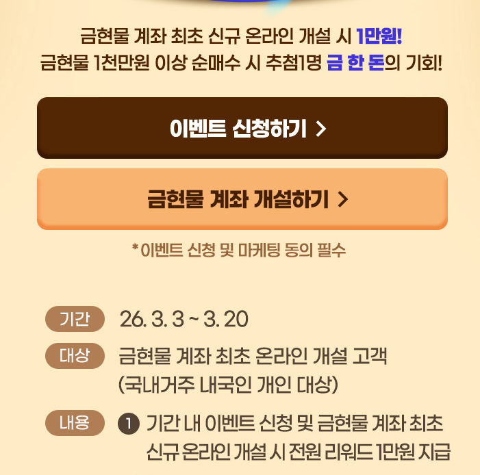 - 참여 대상: 기간 내 삼성증권 비대면 종합 계좌 최초 신규 개설 고객