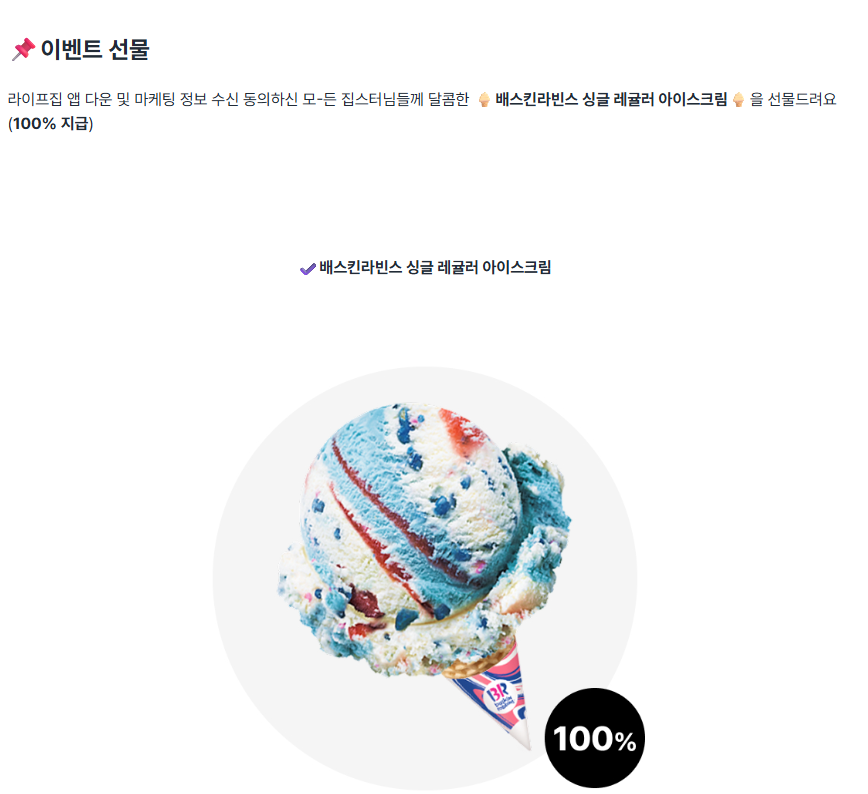 1. 라이프집 앱 이벤트 (배스킨라빈스 100% 당첨)