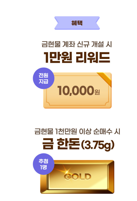 - 혜택: 내 삼성증권 계좌로 10,000원 즉시 입금! (바로 주식 매수에 쓰거나, 출금도 가능한 알짜 혜택)