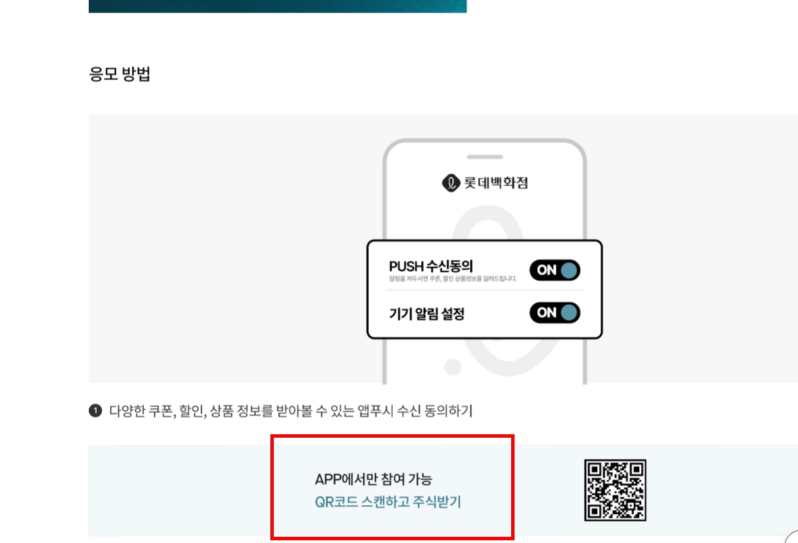 - ✅ APP PUSH 수신 동의 필수 롯데백화점몰 APP에서 PUSH 알림을 동의한 고객만 추첨 대상이 됩니다.