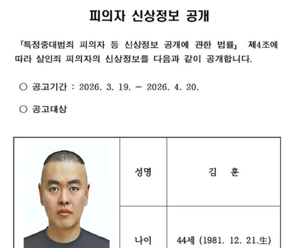 남양주 살인범 김훈 신상공개 소식이 속보로 전해지면서 전국적인 관심이 집중되고 있습니다. 이번 남양주 살인범 김훈 신상공개 사건은 범행 경위와 체포 과정, 그리고 신상 공개 결정까지 이어지며 큰 충격을 주고 있습니다.