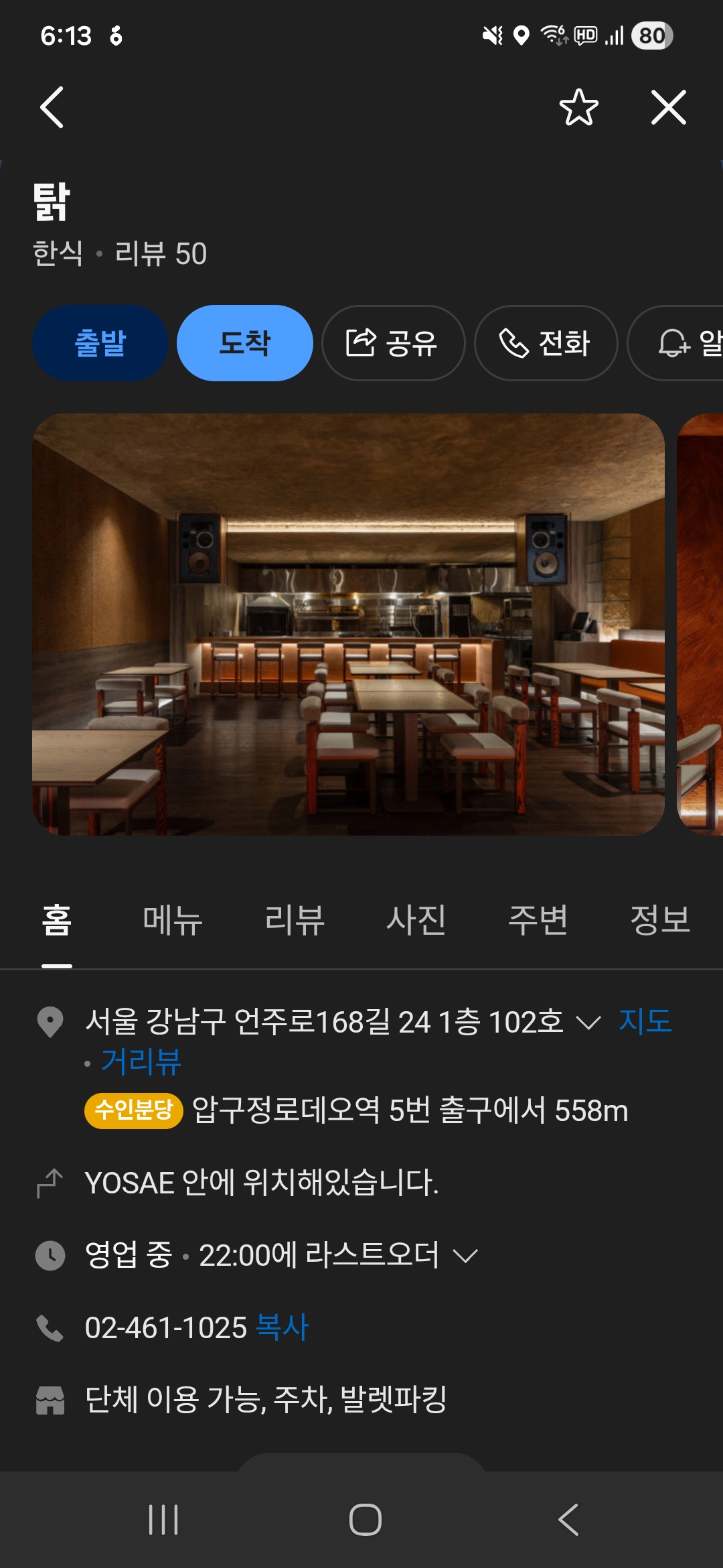 - 기타: 단체 이용 가능, 발렛파킹 가능 (공개 정보 기준)